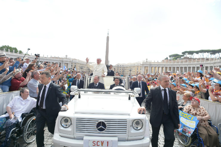 El papa Francisco ha celebrado este jueves la audiencia jubilar, la última antes de la pausa estiva. De este modo, las audiencias generales se retomarán en el mes de agosto. Así, en la audiencia general de esta semana ha continuado con las catequesis sobre la misericordia y también ha reflexionado sobre su reciente viaje a Armenia. Como es habitual, a la llegada de Francisco a la plaza, la gran multitud allí reunida ha celebrado con alegría el poder verle de cerca. Desde el jeep descubierto, el Pontífice dada su bendición y mostraba su cariño y cercanía a los peregrinos allí reunidos.